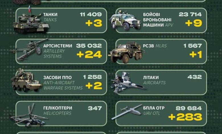 1300 окупантів, три танки й дев’ять ББМ: у Генштабі ЗСУ оприлюднили бойові втрати рф