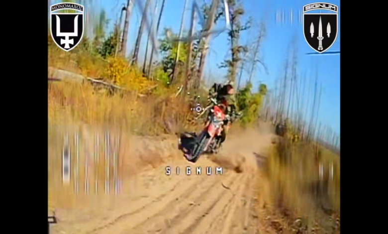 Бійці батальйону Signum 53-ї окремої механізованої бригади імені князя Володимира Мономаха уразили ворожого бійця, який вирішив прориватися до наших позицій на червоному ендуро Sycmcc 300.