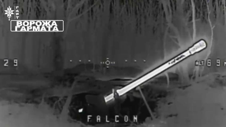 Кадр з відео ураження ворожої артилерії дронарями бригади