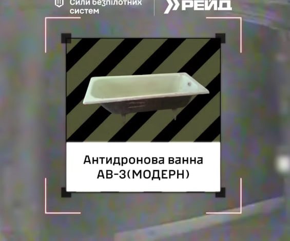 На оприлюднених кадрах видно, як двоє окупантів метушаться в пошкодженій будівлі, намагаючись знайти укриття. Коли український дрон заходить усередину, вороги тягнуть перед собою цілу ванну, використовуючи її як імпровізований щит.
