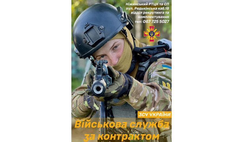 За детальною інформацією звертатися до відділення рекрутингу та комплектування Ніжинського РТЦК та СП за адресою: м. Ніжин, вул. Редькінська, кабінет №18, або за телефоном: 067 725 5027.