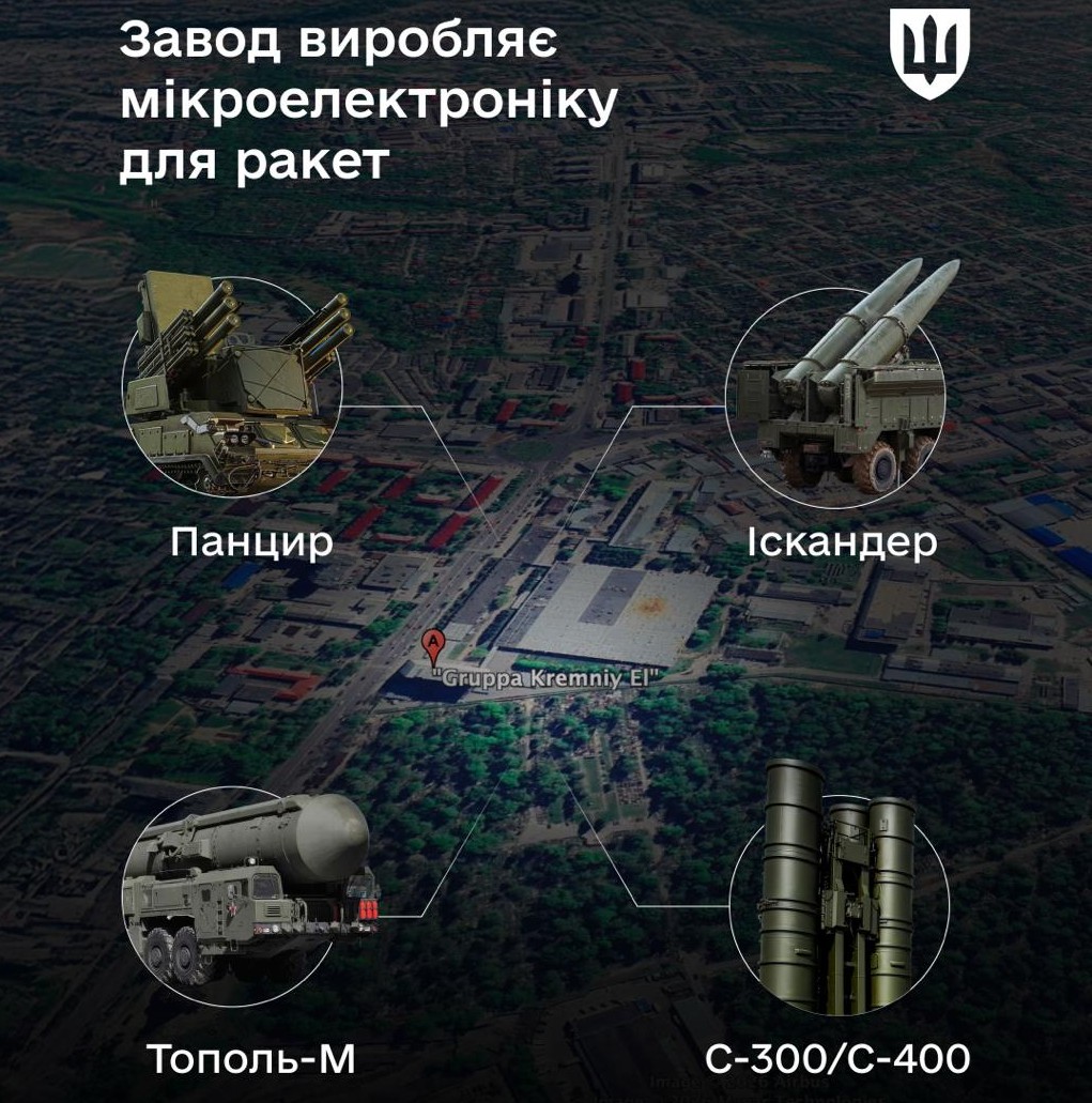 - Завод «Кремний Эл» у Брянську виготовляє мікроелектроніку для російських ракет. Інфографіка Міністерства оборони України