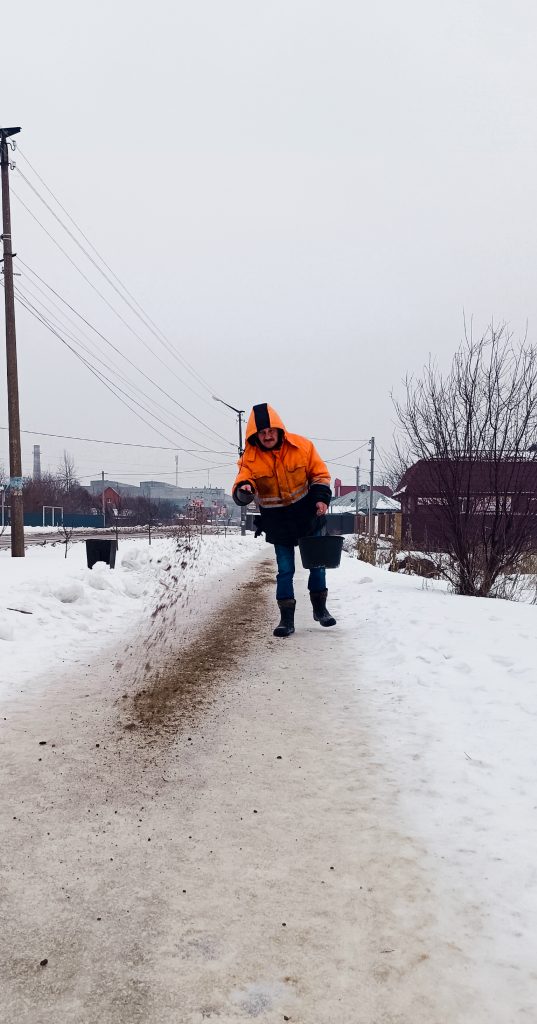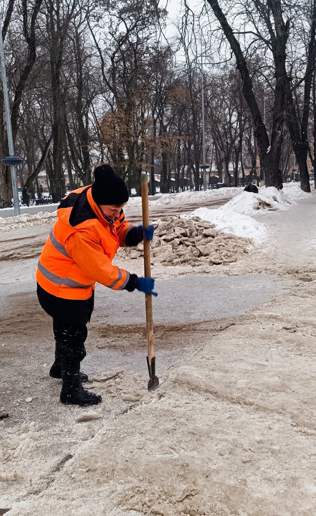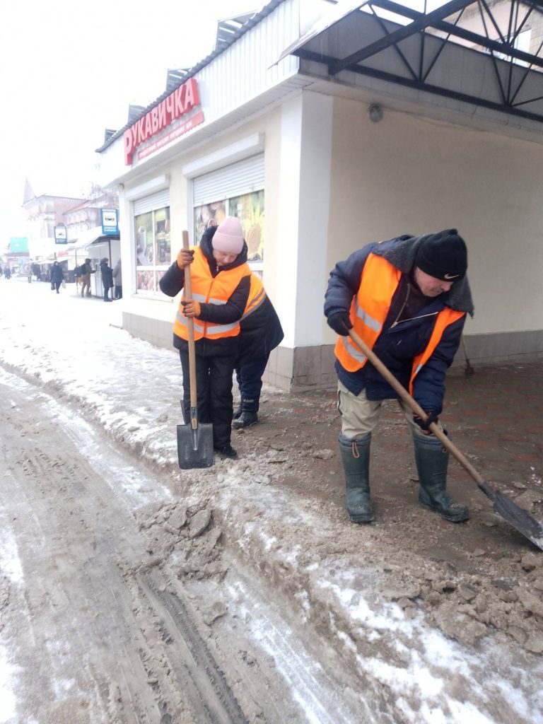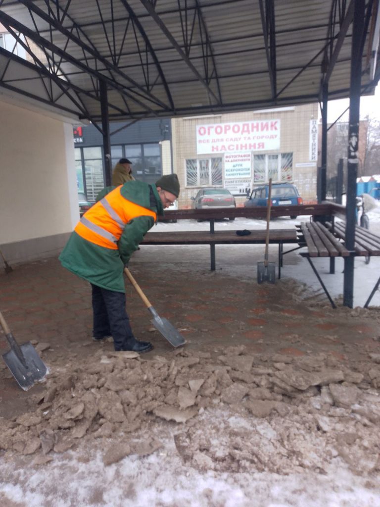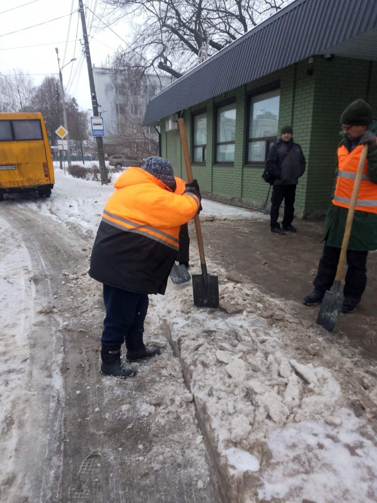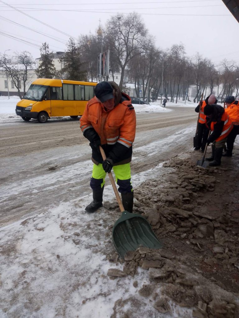 Тротуари: наші невтомні прибиральники розчищають та посипають пішохідні зони, зупинки громадського транспорту, доріжки парків і скверів.