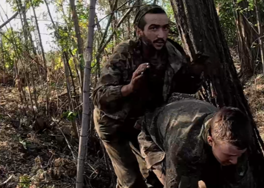 Також полонений зафільмував «розмову» двох окупантів. В кращих традиціях: зі стрільбою та постановкою на коліна. Останні відео на його телефоні — уже з тієї труби, звідки його витягли в полон бійці РДК.
