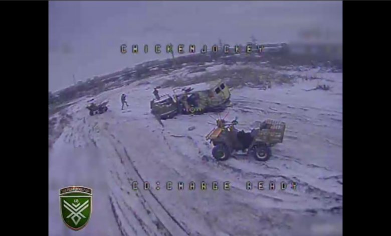 Наші пілоти створюють короки з підбитої російської техніки на дорогах до Покровська. Скрін з відео 68-ї бригади