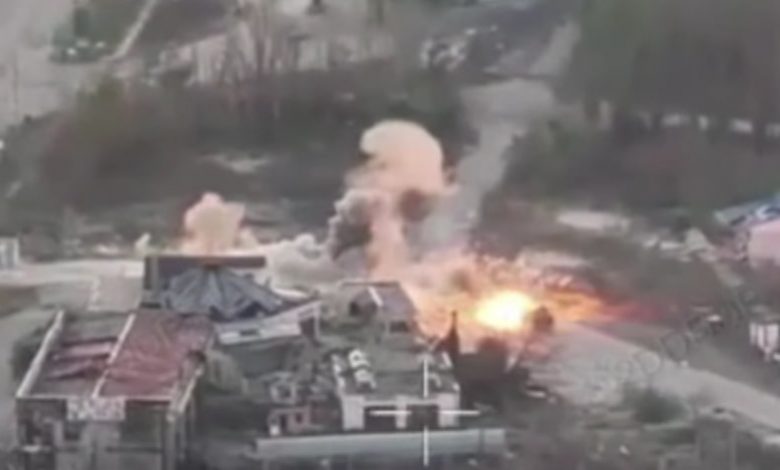 На відео, знятому з безпілотника, видно, як УАЗ окупантів на високій швидкості рухається по дорозі, після чого стається потужний вибух, який буквально розриває автомобіль на шматки.