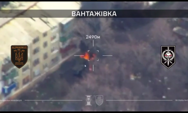 Ворожа техніка, яку уразили наші “ударні” крила. Скрін з відео батальйону “Інквізиція” 59-ї бригади