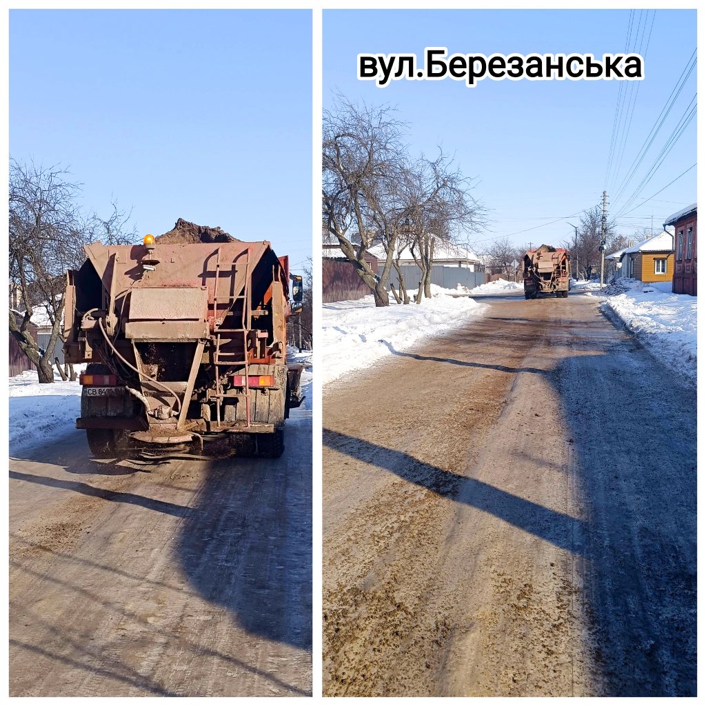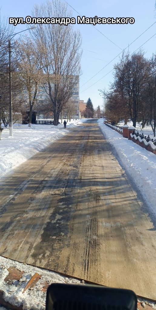 Наразі спецтехніка завершила протиожеледну обробку на таких локаціях: вул. Бузкова, вул. Воздвиженська, вул. Індустріальна, вул. Березанська, вул. Полковника Розумовського, вул. Олександра Мацієвського.