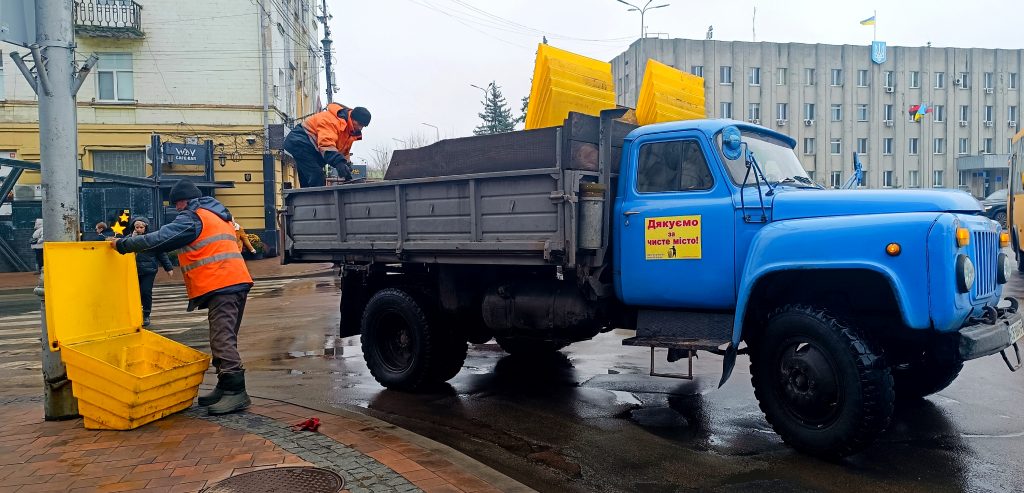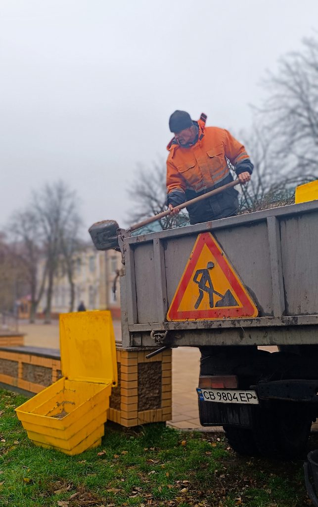 Комунальники готуються до зими: по місту встановлюють контейнери із сумішшю проти ожеледиці