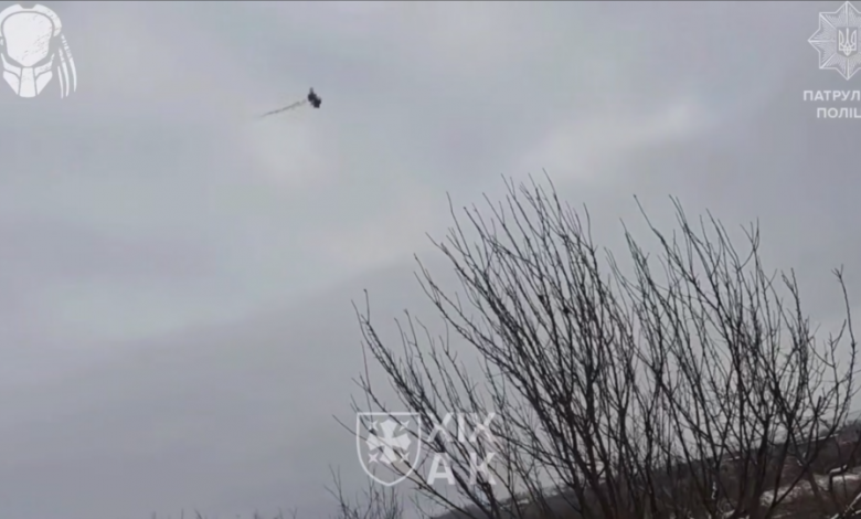«Над містом — постійна загроза з повітря. Саме в таких умовах наші поліцейські щодня виходять на полювання за ворожими дронами», — прокоментували відео у корпусі.