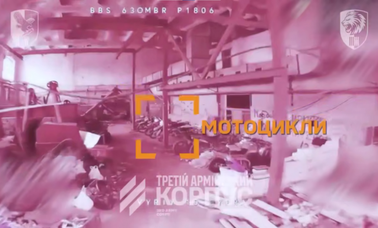 Наш дрон знайшов схованку з російськими мотоциклами. Скрін з відео 63-ї бригади