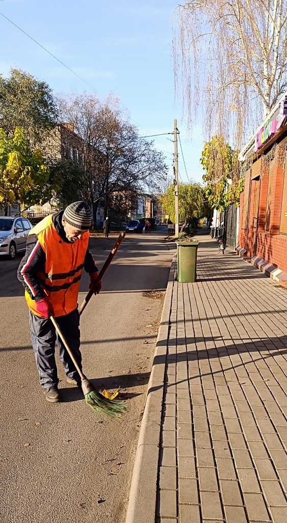 Прибиральники підтримують охайність вулиць, парків і скверів — змітають останнє золоте листя, яким щедро вкриває землю листопад.