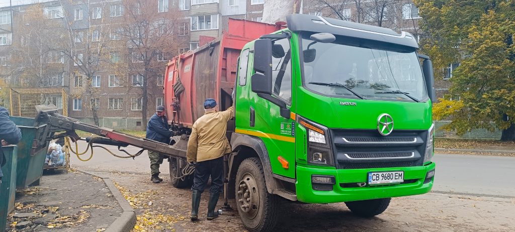 Сміттєвози справно курсують своїми маршрутами, забезпечуючи своєчасне вивезення відходів.