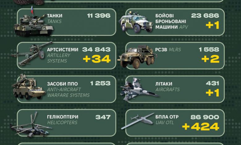 За минулу добу російські загарбники втратили 1 240 військових вбитими та пораненими та 558 одиниць техніки.