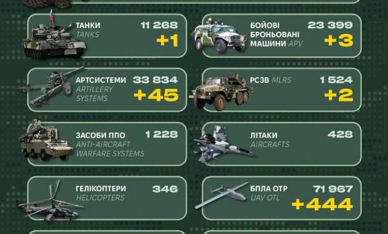 • особового складу ‒ 1130180 (+1000) осіб ліквідовано