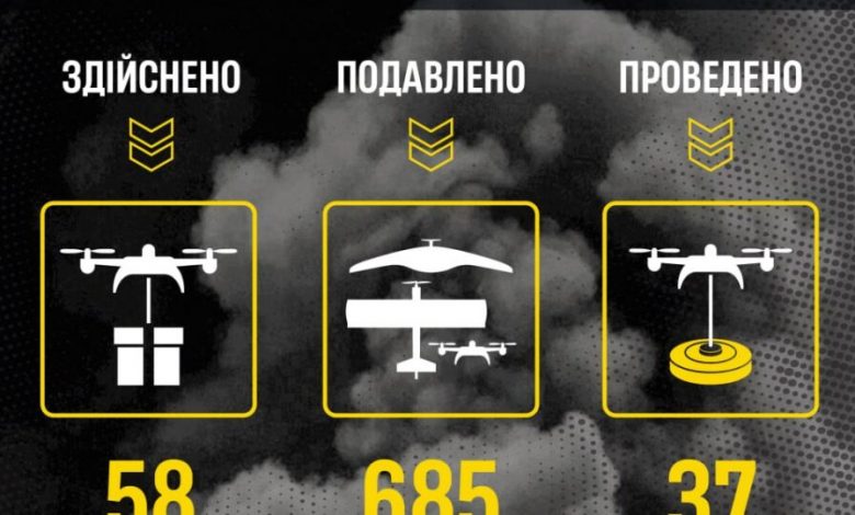Відзначимо й роботу операторів РЕБ: вони придушили 685 російських дронів.