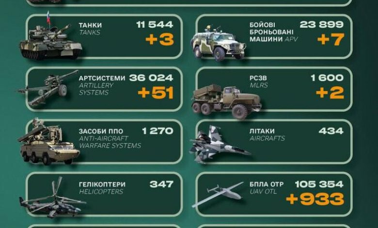 - бойових броньованих машин — 23 899 (+7) од.