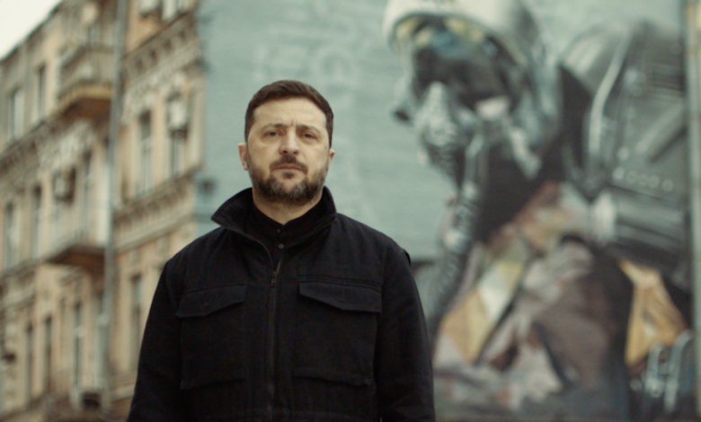 Президент записав відеозвернення на тлі муралу «Привид Києва», що присвячений пілотам тактичної авіації Повітряних сил ЗСУ, які від початку повномасштабного російського вторгнення захищають небо над столицею (стінопис розташований у місті Києві, на вулиці Межигірській, 3/7).