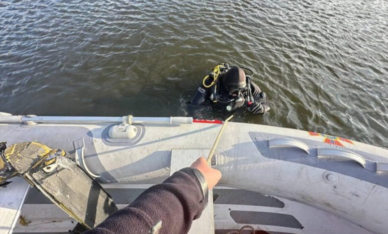 Водолази-сапери ДСНС обстежили ділянку та за 60 метрів від берега вилучили уламки ворожого безпілотника.
