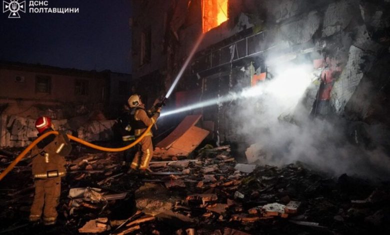 За інформацією ДСНС, у місті Полтава та Полтавському районі внаслідок ворожих ударів зафіксовані пошкодження житлових будинків, готелю та виробничих об’єктів. Виникли пожежі,які ліквідували вогнеборці.
