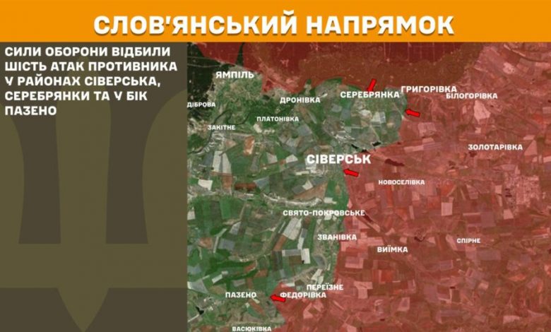 Підрозділи 54-ї механізованою, 10-ї гірськоштурмової та 81-ї аеромобільної бригад здійснюють оборону в районі населених пунктів Серебрянка, Дронівка, Свято-Покровське, Званівка, Пазено, Сіверська та Переїзного.