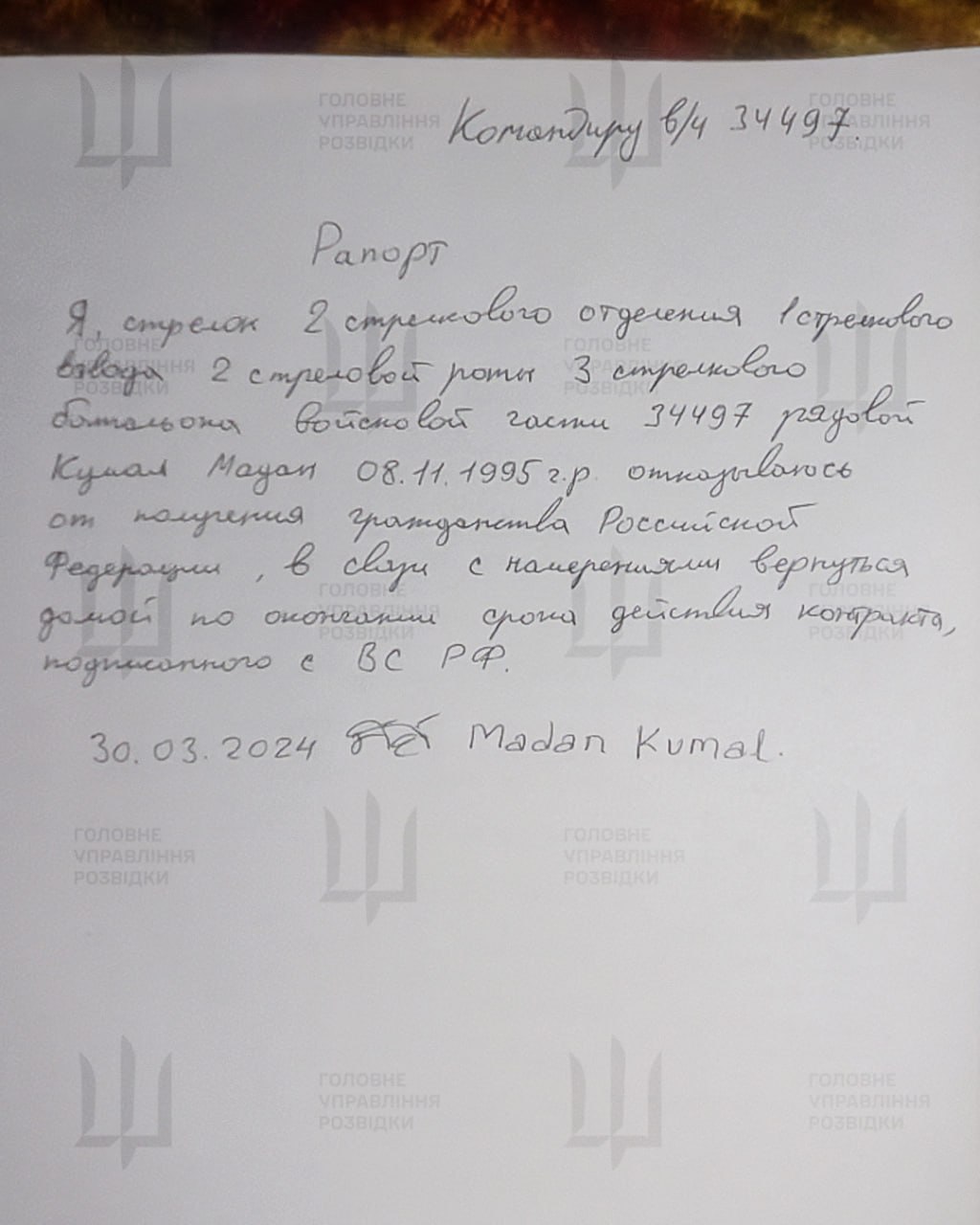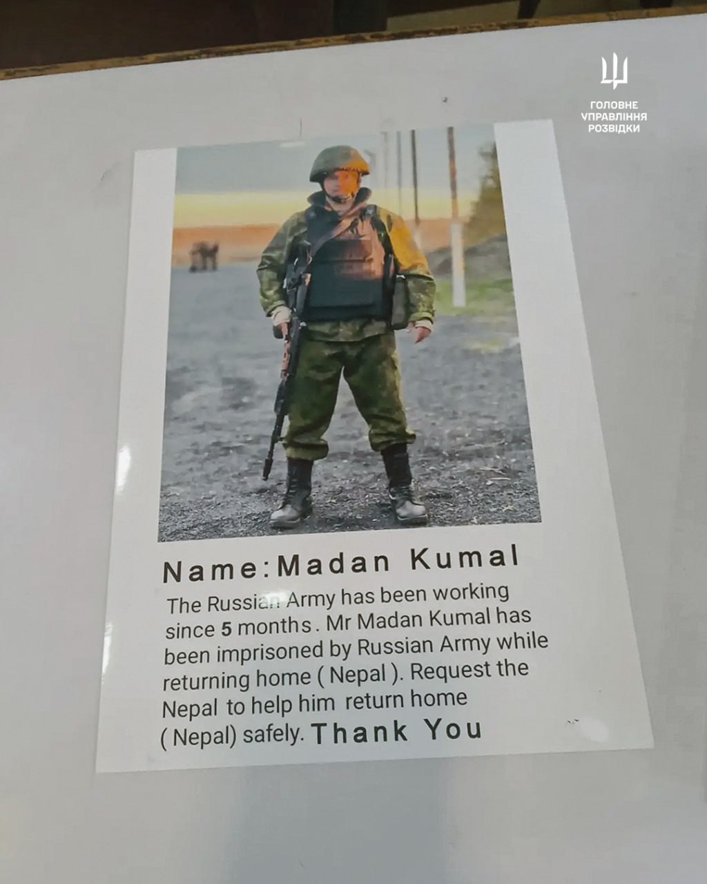 Воєнна розвідка ідентифікувала одного з ліквідованих окупантів на Донеччині — громадянина Непалу Мадана Кумала (Madan Kumal), 08.11.1995 року народження.