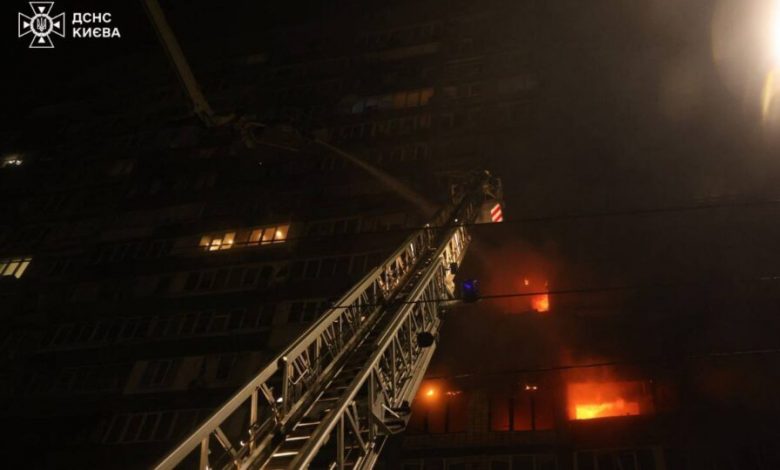 Нічна атака на Київ: у Печерському районі пожежа в багатоповерхівці, дев’ятеро поранених