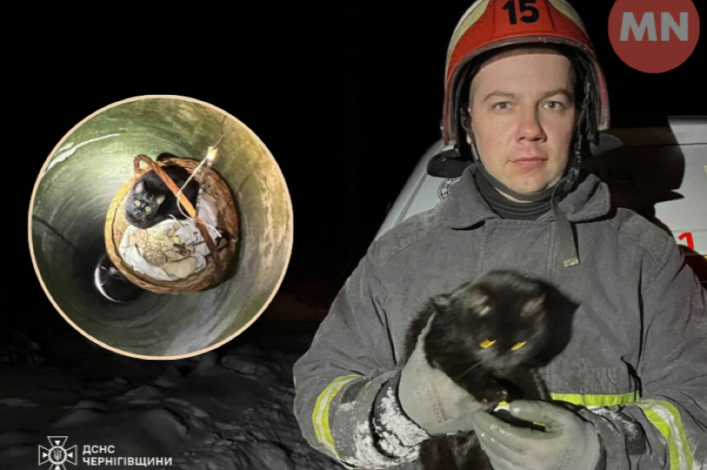 Ніжинські рятувальники дістали з покинутої криниці кота