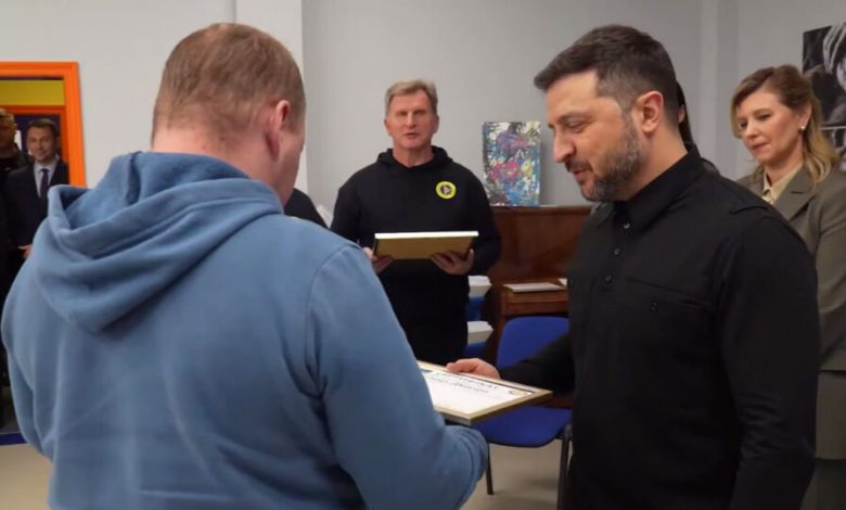 Президент України Володимир Зеленський разом із Першою леді Оленою Зеленською відвідали центр Trinity Hub — місце, де українські захисники, які втратили зір, проходять реабілітацію та адаптацію.