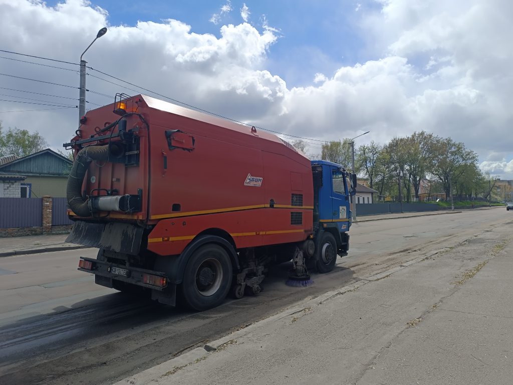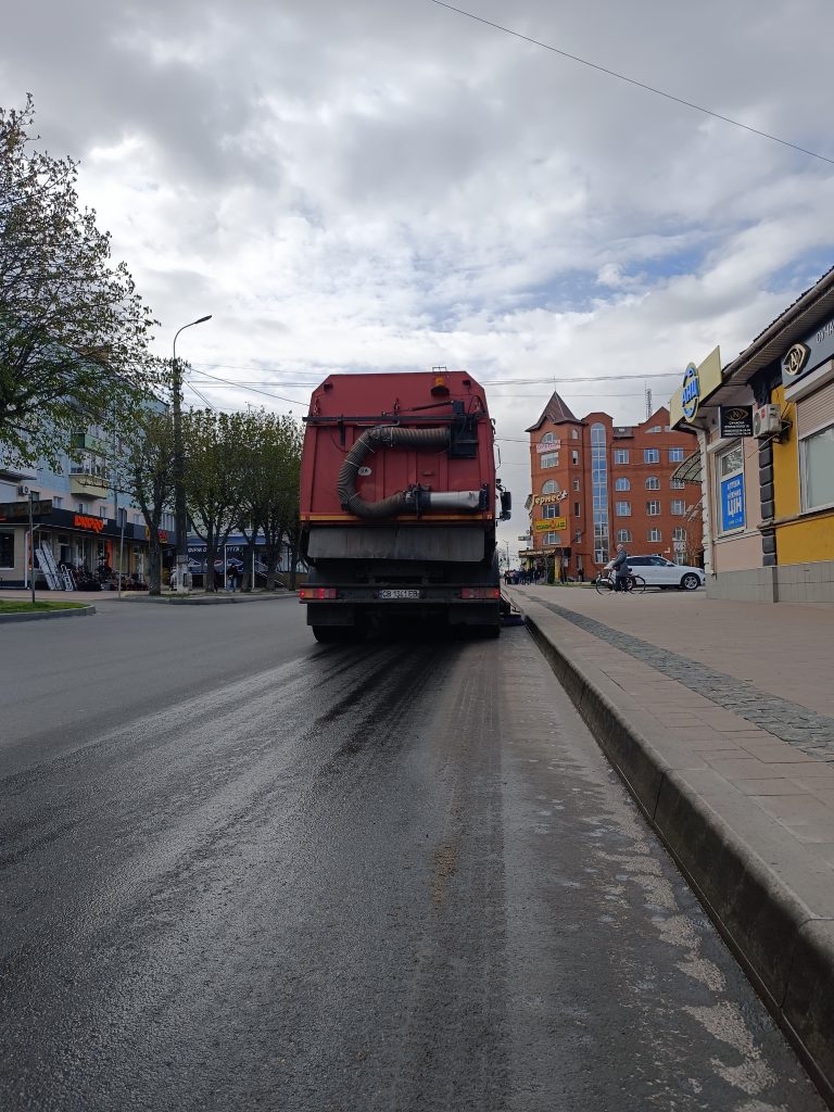 Зимова боротьба за безпеку на дорогах залишила тонни піщано-сольової суміші, що накопичилася вздовж бордюрів. Саме тому на вулицях міста працює «важка артилерія» — вакуумна машина КП “ВУКГ” МДКЗ 12-06.