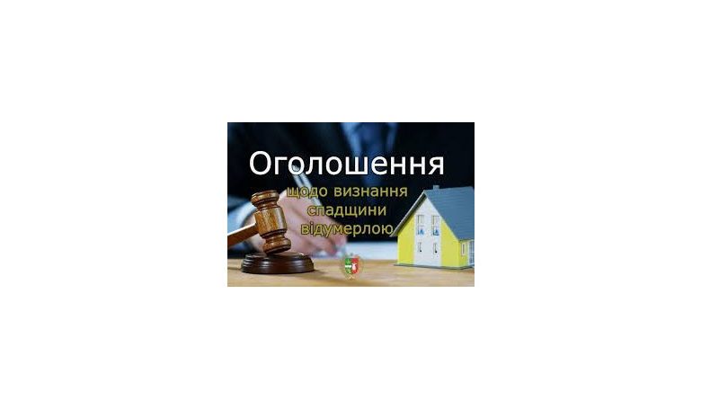 У порядку передбаченому законодавством України, Ніжинська міська рада Чернігівської області, повідомляє, що до Ніжинського міськрайонного суду Чернігівської області, готуються документи та буде подано заяву про визнання спадщини відумерлою за Антонюк Людмилою Анатоліївною, 28.04.1967 р. н., яка померла 30.08.2025 року.