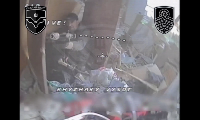 На кадрах видно, як дрон залітає в будинок, летить кімнатами, і в одній знаходить російського штурмовика, який цілиться зі зброї.