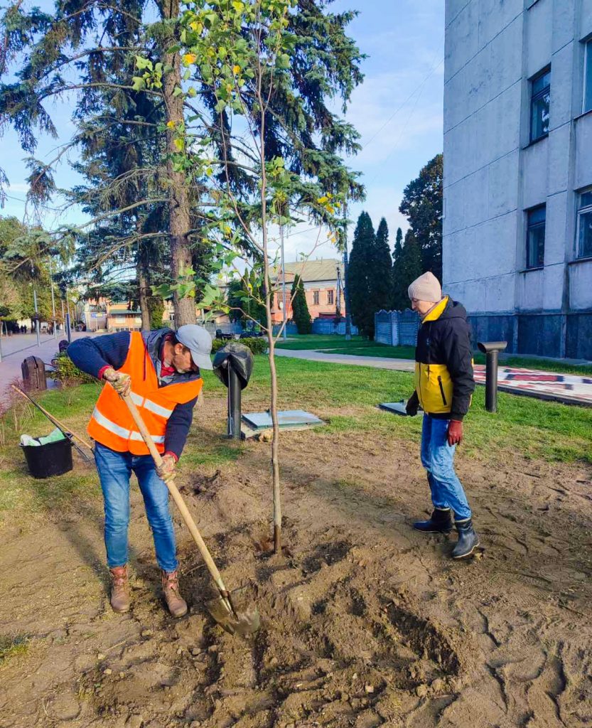 Квітникарі КП «ВУКГ» невтомно працюють, щоб наше місто розквітало навіть у непрості часи. На зеленій зоні Меморіального комплексу «Героям-захисникам України» висаджено дві туї та барбарис Тунберґа, а на площі Франка з’явилося тюльпанове дерево.