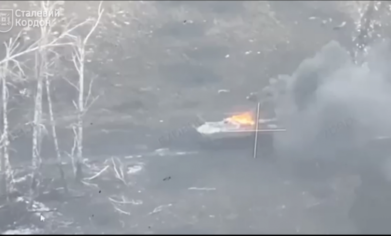 Ворожий панцерник палає на кордоні Сумщини. Фото з відео прикордонного загону «Сталевий Кордон».