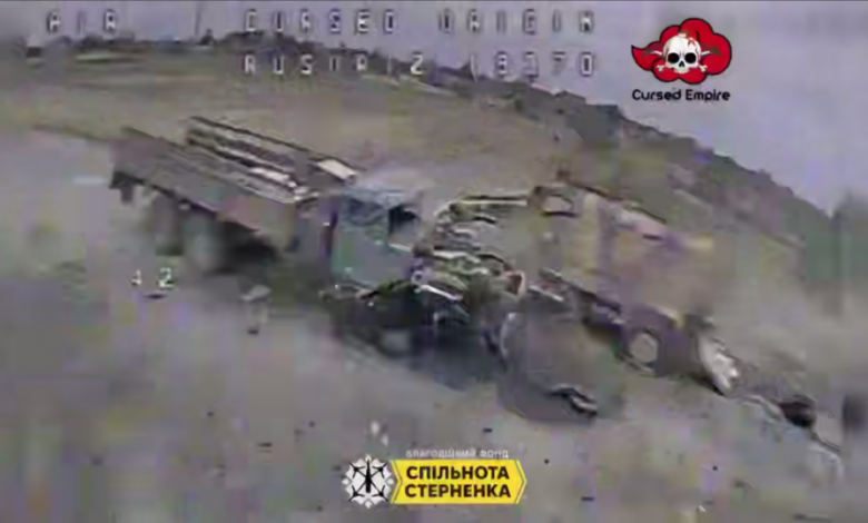 Знищення ворожих вантажівок. Скрін з відео 100-ї бригади