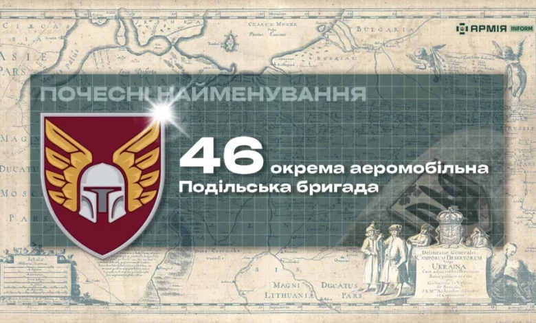 29 квітня 2025 року Президент України присвоїв 46 окремій аеромобільній бригаді Десантно-штурмових військ Збройних Сил України почесне найменування «Подільська».