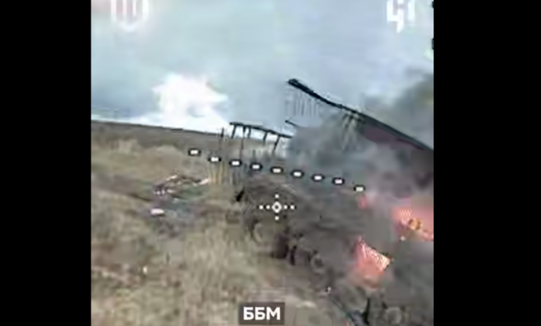Російський панцерник палає після влучання дрона. Скрін з відео 411-го полку безпілотних систем