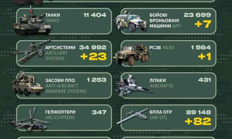 Понад 1 400 окупантів, 7 ББМ і спецтехніка: у Генштабі ЗСУ назвали бойові втрати рф