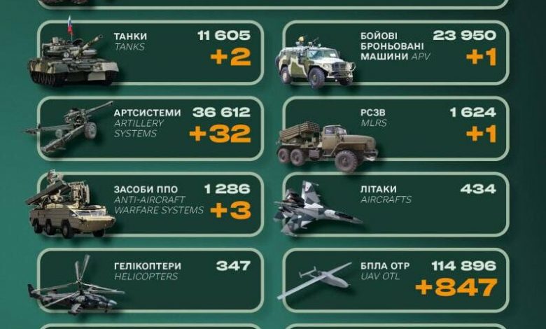 • БПЛА оперативно-тактичного рівня — 114 896 (+847) од.