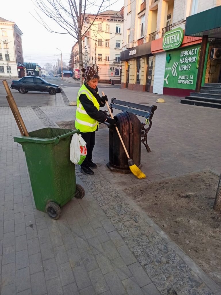 Прибиральники вулиць проводять санітарне очищення міста від сміття та дорожнього змету.