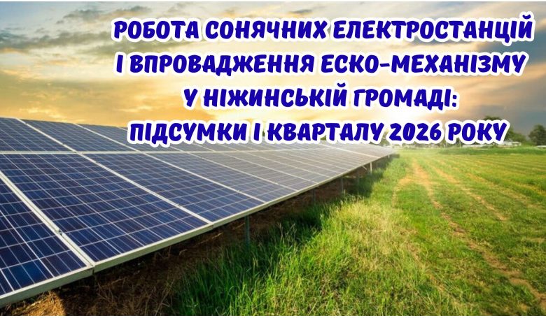 Робота сонячних електростанцій і впровадження ЕСКО-механізму у Ніжинській громаді: підсумки І кварталу 2026 року