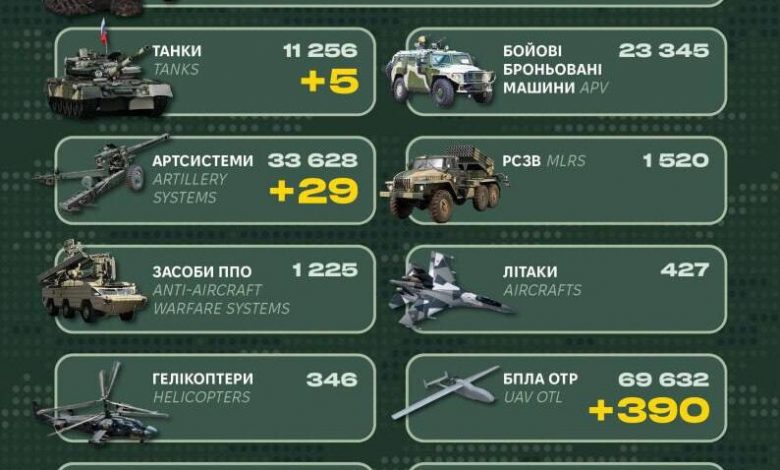 Російські втрати за добу склали 1200 військових, п’ять танків та 29 артсистем