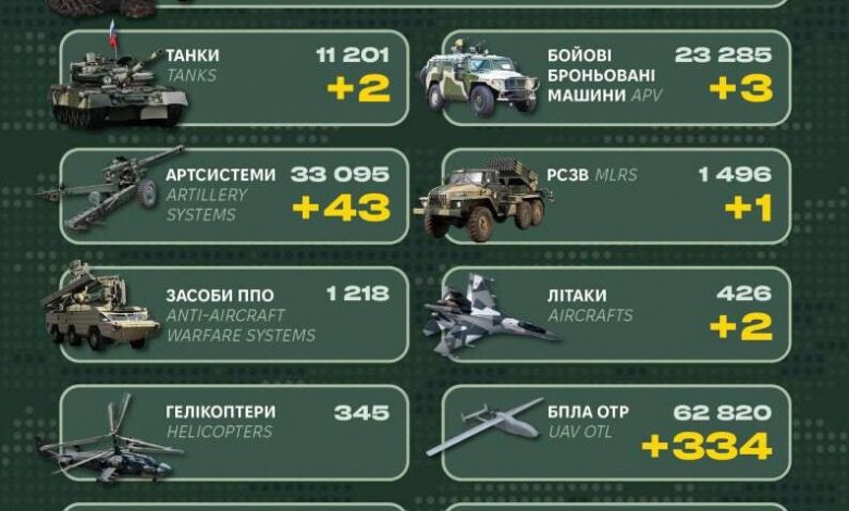 За минулу добу російські окупаційні війська втратили 970 своїх військових, два танки, два літаки та іншу техніку.