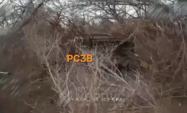 Ворожу РСЗВ знайшли у кущах. Скрін з відео 3-го корпусу