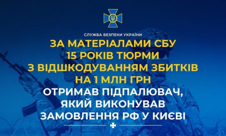 За матеріалами СБУ 15 років тюрми з відшкодуванням збитків на 1 млн грн отримав підпалювач, який виконував замовлення рф у Києві