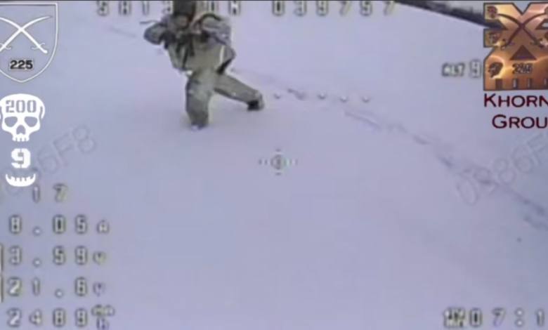 Окупант намагається ухилитися від дрона. Скрін з відео 225-го полку