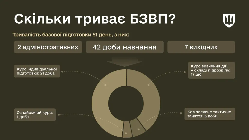 Тривалість БЗВП в ЗСУ складає 51 день. Безпосередньо на навчання відводиться 42 доби. Цей період охоплює: