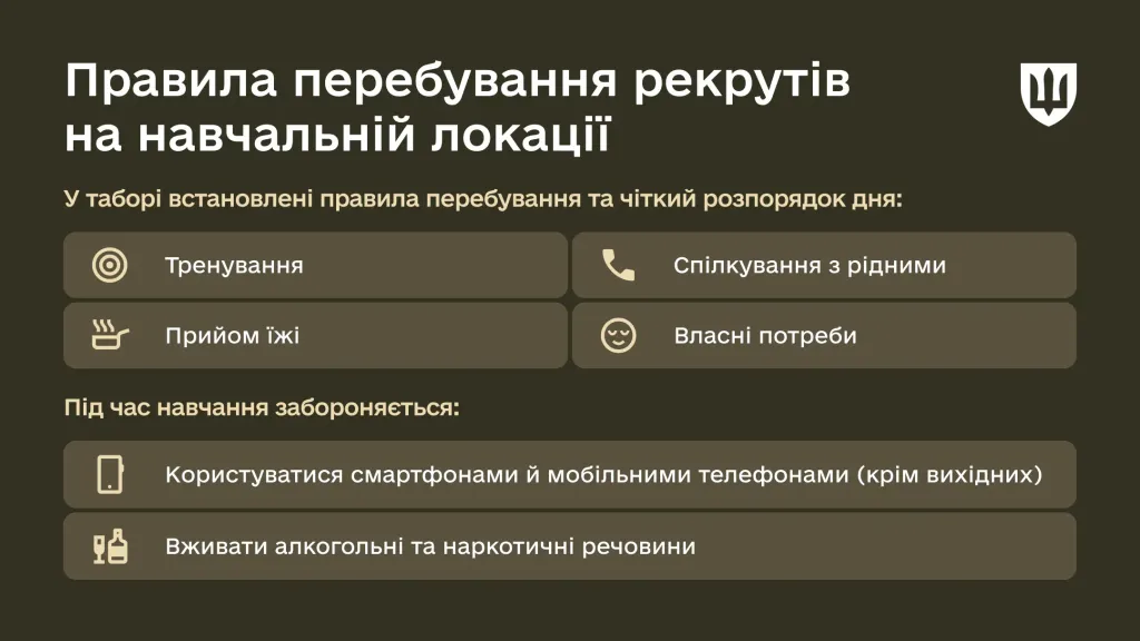 На навчальній локації встановлені правила перебування та чіткий розпорядок дня, який складається з: