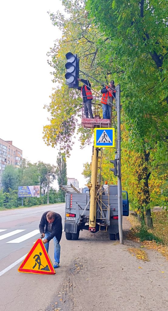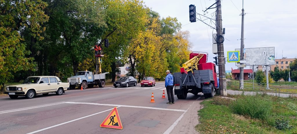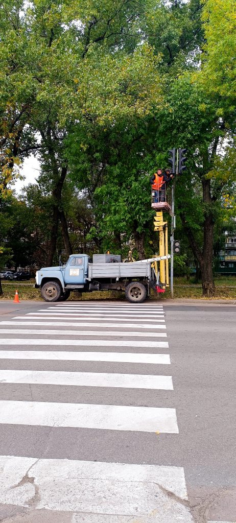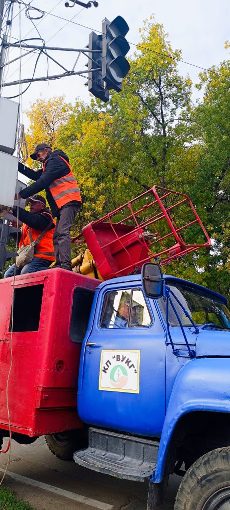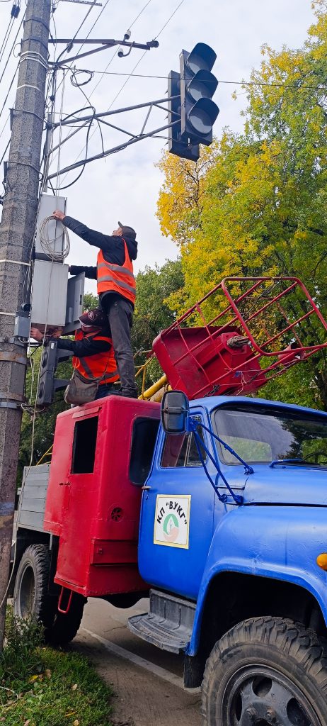 Біля зупинки громадського транспорту «Молодіжна» електрики КП «ВУКГ» провели ремонт світлофора.