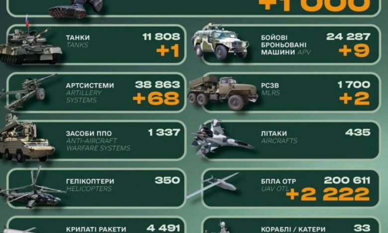 Окупаційна російська армія за минулу добу втратила 1000 одиниць особового складу і майже 70 артилерійських систем.